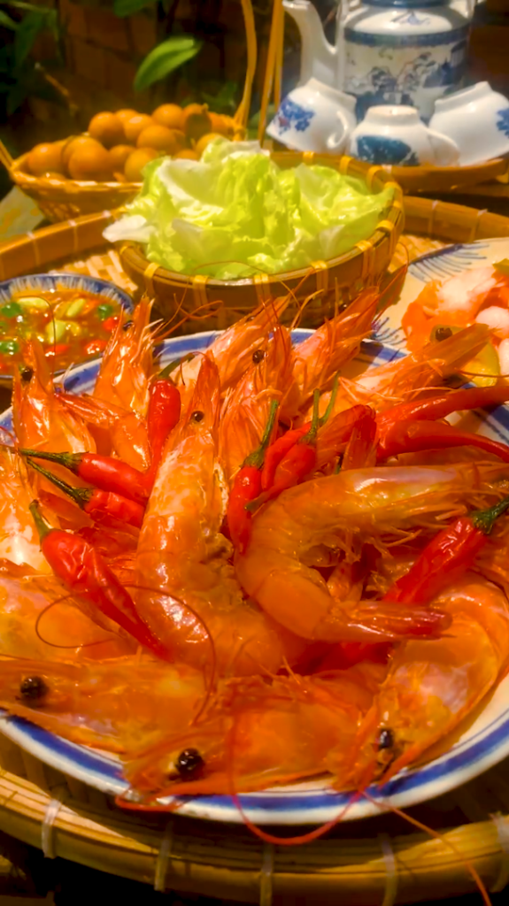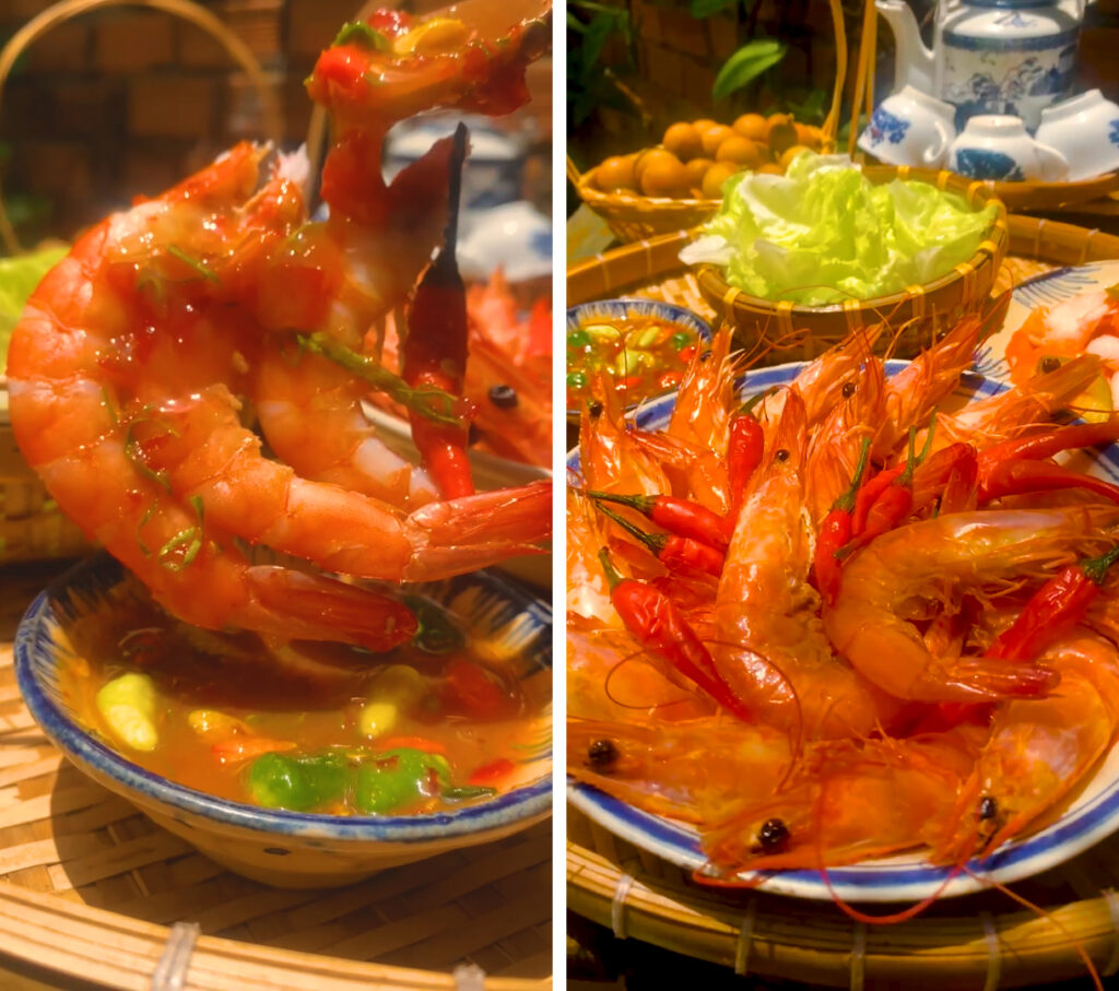 Nếu bạn là tín đồ hải sản, chắc hẳn tôm hấp nước mắm là món không thể bỏ qua. Vị ngọt tự nhiên của tôm tươi hòa quyện với nước mắm đậm đà, thơm nồng. Đây là món ăn dễ làm nhưng cực kỳ “bắt cơm”, phù hợp cho bữa ăn gia đình hoặc đãi khách dịp cuối tuần.